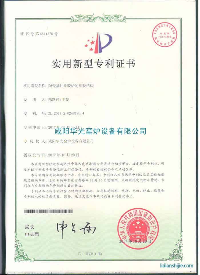 2017年10月27日,我司又獲一項新專利“陶瓷基片排膠爐的排膠結構”
