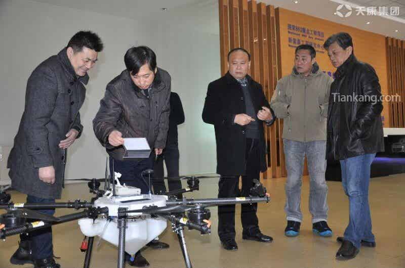 天康集團副總經理閔玉均(右三)向政協委員們一行介紹天康鋰電池無人機的相關情況