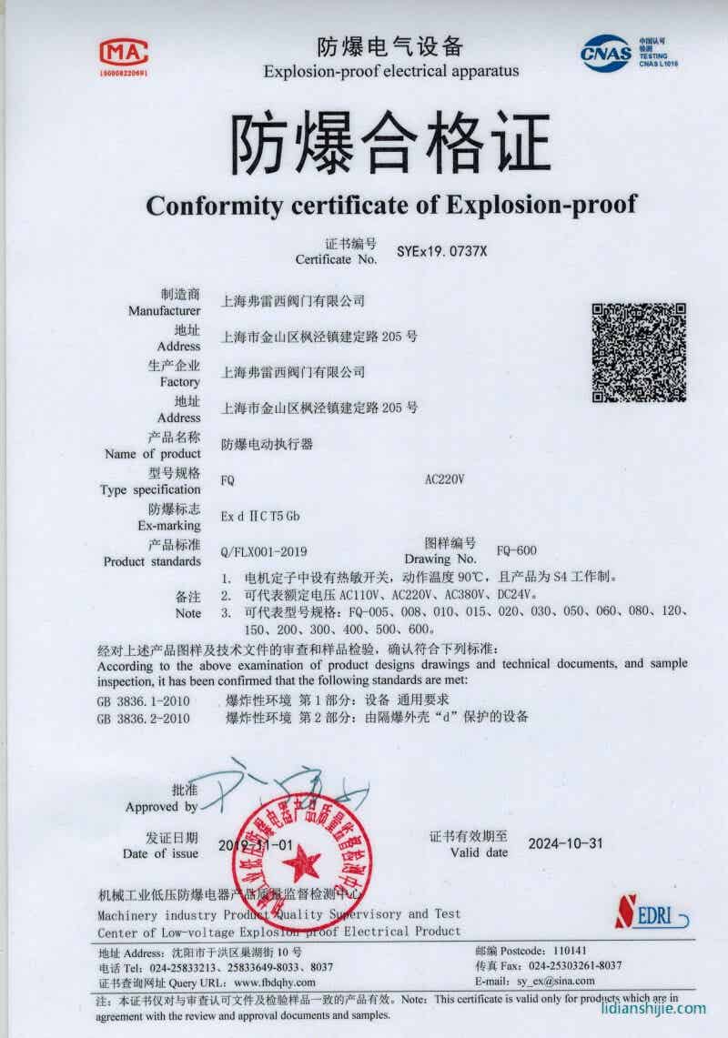 執行器獲得防爆證書認證