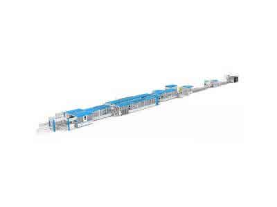 該產線是將軟包電芯組裝為模組的自動化生產線,其工藝流程包括:電芯上料、電芯處理、涂膠烘干、模組堆疊、涂膠入殼、極耳折彎整平、極耳焊接、采集線焊接、外殼焊接、外觀尺寸檢測、EOL測試等。