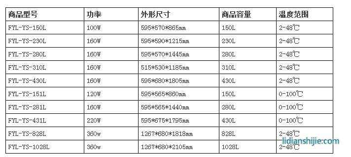 型號:FYL-YS-100L 溫度:4~38℃ 外型尺寸:480×490×840mm