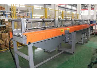 冠猴智能鋰電窯爐外軌自動循環(huán)線,是實現(xiàn)粉體原料在窯爐燒結前的定量灌裝、攤平、切塊等前道工藝,同時完成窯爐燒結后的提升、倒料、清掃等后道工藝。