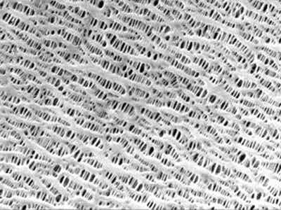 干法單向拉伸工藝是通過生產硬彈性纖維的方法,制備出低結晶度的高取向聚丙烯或聚乙烯薄膜,在高溫退火過程中,獲得高結晶度的薄膜。這種薄膜先在低溫下進行拉伸形成微缺陷,然后高溫下使缺陷拉開,形成微孔。干法雙向拉伸工藝是中國科學院化學研究所在20世紀90年代初開發出的具有自主知識產權的工藝。干法雙向拉伸工藝,通過在聚丙烯中加入具有成核作用的β晶型改進劑,利用聚丙烯不同相態間密度的差異,在拉伸過程中,使聚丙烯