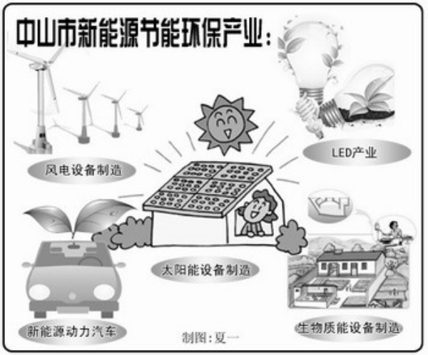 “中山市把新能源產(chǎn)業(yè)作為新興產(chǎn)業(yè)發(fā)展主攻方向和產(chǎn)業(yè)轉型升級的突破口,設立1億元新能源扶持資金,重點發(fā)展風電裝備、LED照明、新能源汽車動力和控制系統(tǒng)、太陽能設備、生物質能設備制造等產(chǎn)業(yè)。”馮煜榮告訴記者。