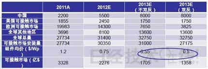 2012年前三季度,太陽能電池組件出貨量約18GW,預計全年將達23GW,但產值同比將大幅下降。2012年預計新增裝機量4~5GW,同比增長66%以上。