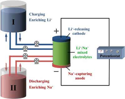 圖2:混合離子電池分離Li+/Na+的原理示意圖