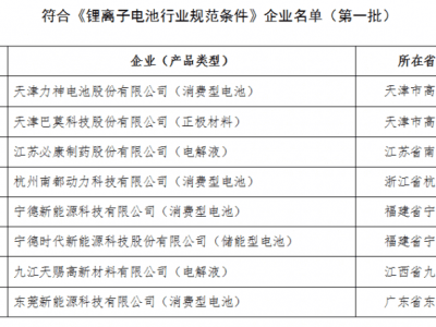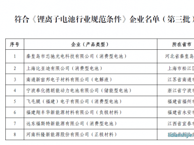 符合《鋰離子電池行業(yè)規(guī)范條件》企業(yè)名單(第四批)公告