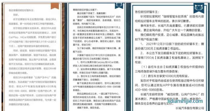 12月16日,歐拉好貓車主聯合發布維權聲明稱,長城汽車于12月9日發布的補償方案未與車主溝通,也未獲多數車主認可: