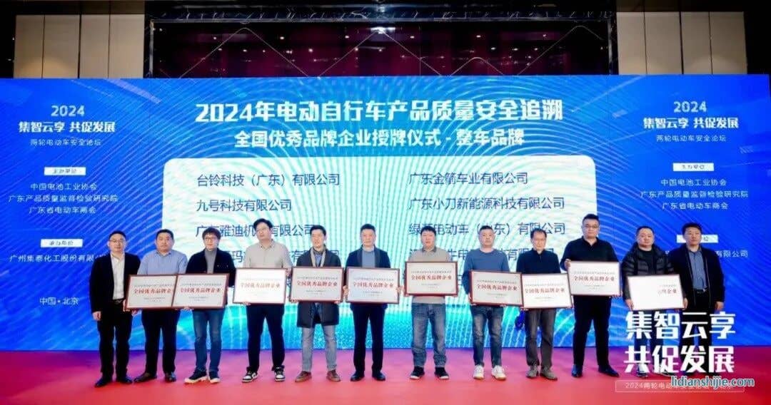 會上,電動自行車行業追溯服務平臺正式發布。中國物品編碼中心李健華副主任、廣東省電動車商會藍世有執行會長、廣東質檢院黃鎮澤部長、中國質量認證中心馮真得、北京中輕聯韓瀟部長、中汽認證趙紅利主管共同上臺,按下啟動鍵,電動自行車行業追溯服務平臺正式發布。并對在平臺試運行期間表現突出的全國優秀品牌企業授牌表彰。