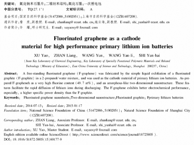 該研究小組從2009年開始就在國家973和國家自然科學(xué)基金的支持下開始研究氟化碳納米材料,實(shí)驗(yàn)室已經(jīng)成功研制出用于鋰電池的氟化碳納米管、氟化碳納米纖維、氟化碳微球等材料。氟化石墨烯顯著提高了鋰電池的比能量和比功率,為新型電源電極材料的發(fā)展奠定了技術(shù)基礎(chǔ)。