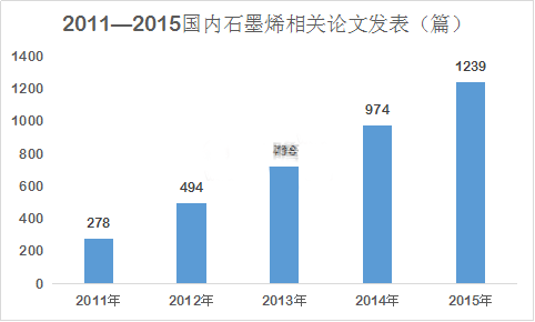 技術研究方面,2011年,國內與石墨烯有關的論文為278篇,2012年為494篇,2013年為718篇,2014年上升至914篇,2015年為1239篇;技術專利上。目前我國在國際上已經申請2200多項石墨烯專利技術,約為全球石墨烯專利技術的三分之一。