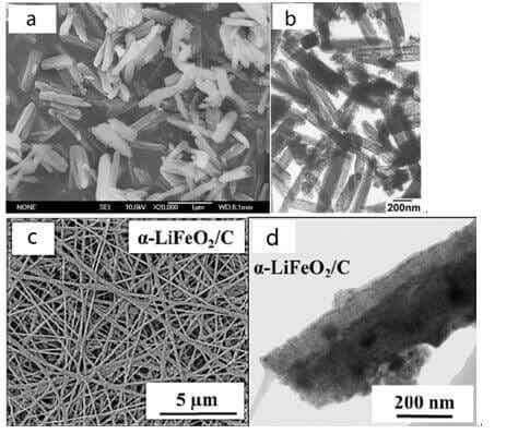 一般通過固相法(600℃以上)制備的LiFeO2是α-LiFeO2,不具有電化學活性,但是將其粒徑控制在納米級時,其具有較好的電化學性能。