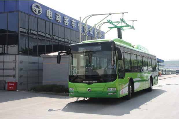 圖1.裝配LpTO電池組,采用集電弓快速充電的插電式混合動力公交客車