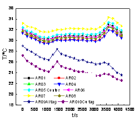 圖10短路過程中各采集點溫度的變化圖