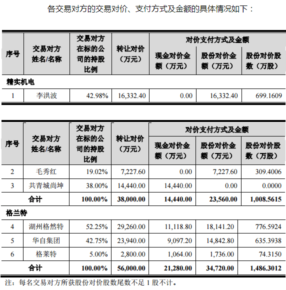 本次交易完成后,精實機電、格蘭特將成為華自科技的全資子公司。本次交易包括發行股份及支付現金購買資產和發行股份募集配套資金兩部分。