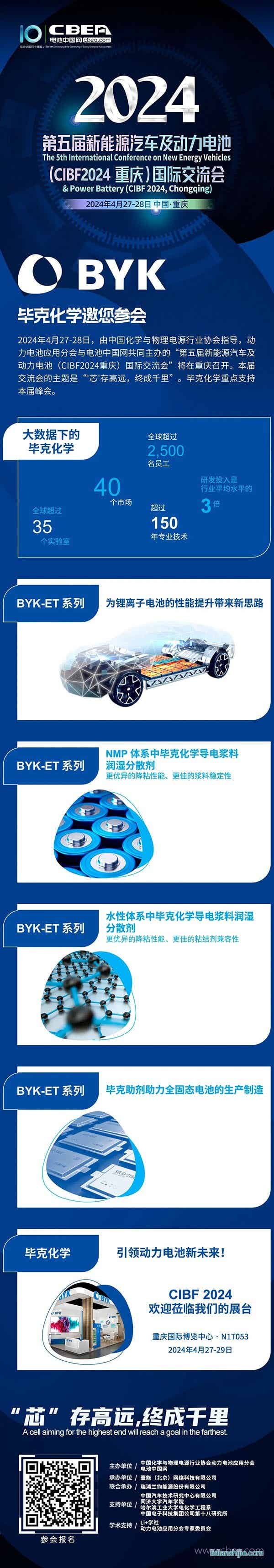畢克化學邀您參加第五屆新能源汽車及動力電池(CIBF2024重慶)國際交流會 2024-04-18 4160 核心提示:稿件來源: 電池中國網 稿件來源: 電池中國網 點贊 0舉報收藏 0打賞 0評論 0分享 311 更多>同類鋰電資訊 • 21世紀經濟報道年終特刊專訪丨王燕清:我們不是 • 定義大儲能時代智造標準丨先導智能聯合外媒重磅 • 第一財經專訪丨先導智能:以技術攻堅鑄就全球鋰 • 持續推動暖光公益活動落地,宮晨瑜女士榮登ESG • 喜報!先導集團董事長王燕清榮膺2025“上證鷹· • 深耕智造創新,彰顯標桿底蘊丨先導智能子公司獲 • 新能源智能裝備領域唯一上榜丨先導智能強勢入選 • CREC 2025丨先導智能與您共赴行業盛會,同創智 • -30℃穩定運行!哈啰沈陽共享電單車全系搭載億 • 億緯鋰能與徐工動力簽署戰略合作協議