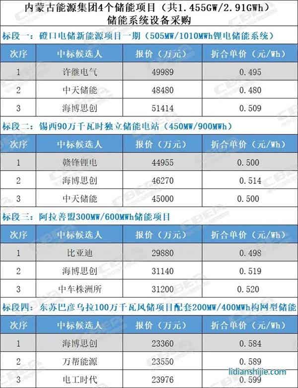值得一提的是,其中贛鋒鋰電、比亞迪分別以所投標段的最低價預中標,許繼電氣、海博思創的投標價也處于各自標段低價位的前三。