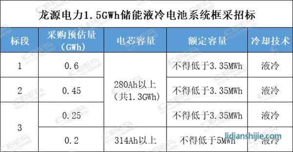 其中280Ah電芯需求1.3GWh,314Ah電芯需求0.2GWh。分為3個標段。詳情如下: