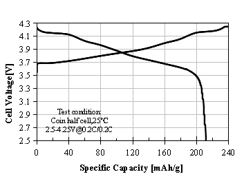 L-9250產品應用:用于圓柱或軟包電池,4.20 V下測試,0.2C放電比容量為215.6mAh/g,循環性能:1C/1C,1000周≥80%,可用于電動汽車或電動工具。