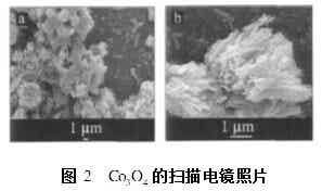 LinChuan等使用醇鹽水解法制備了超細(xì)Co2O3電極活性材料,單電極比電容達(dá)到291F/g。此外CoOx和其他金屬氧化物的復(fù)合也被廣泛地研究。筆者以檸檬酸為模板,以硝酸鈷為原料利用水熱法制備了前驅(qū)體,200℃熱分解制得Co3O4,研究其在6mol/LKOH溶液中和-0.1~0.5V(vs.SCE,下同)電位范圍內(nèi),循環(huán)伏安、恒流放電等電化學(xué)電容性能。