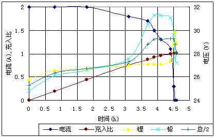 圖2 混合電池系統和兩種蓄電池的充電曲線