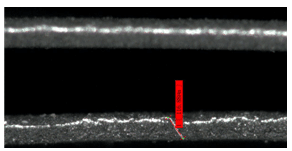 圖4是極片分切時存在的掉料和波浪邊缺陷,波浪邊。出現(xiàn)波浪邊時,極片分切和卷繞時會出現(xiàn)邊緣糾偏抖動,從而引起工藝精度,另外對電池最終的厚度和形貌也會出現(xiàn)不良影響。