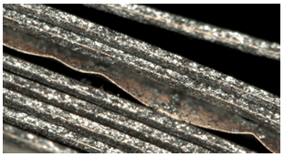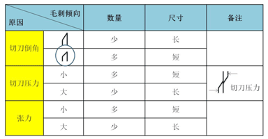 毛刺,特別是金屬毛刺對鋰電池的危害巨大,尺寸較大的金屬毛刺直接刺穿隔膜,導(dǎo)致正負(fù)極之間短路。而極片分切工藝是鋰離子電池制造工藝中毛刺產(chǎn)生的主要過程。圖3所示即為極片分切產(chǎn)生的金屬毛刺的典型形貌,極片在分切時形成了集流體毛刺,尺寸達(dá)到100μm以上。表1是LiFePO4極片分切毛刺實驗結(jié)果,通過切刀倒角、刀具側(cè)向壓力以及收放卷張力的調(diào)節(jié)來控制毛刺的數(shù)量和尺寸。