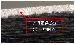 極片分切圓盤刀存在側(cè)向壓力,上下刀具在刀刃口側(cè)面相互重疊,連續(xù)分切過程中,刃口局部承受的應(yīng)力大且集中,由于頻繁的擠壓、剪切、摩擦和循環(huán)交變的機械載荷作用,在刃口區(qū)易出現(xiàn)疲勞微裂紋,繼而在循環(huán)應(yīng)力的作用下,會沿著圓盤刀側(cè)面向中心擴展,當(dāng)裂紋增長到一定程度,應(yīng)力達(dá)到刀具材料的強度極限時就會造成刀具刃口的局部微破損。