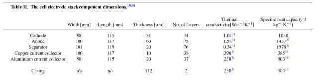 實驗中用到的電池內部結構的基本參數如下表所示